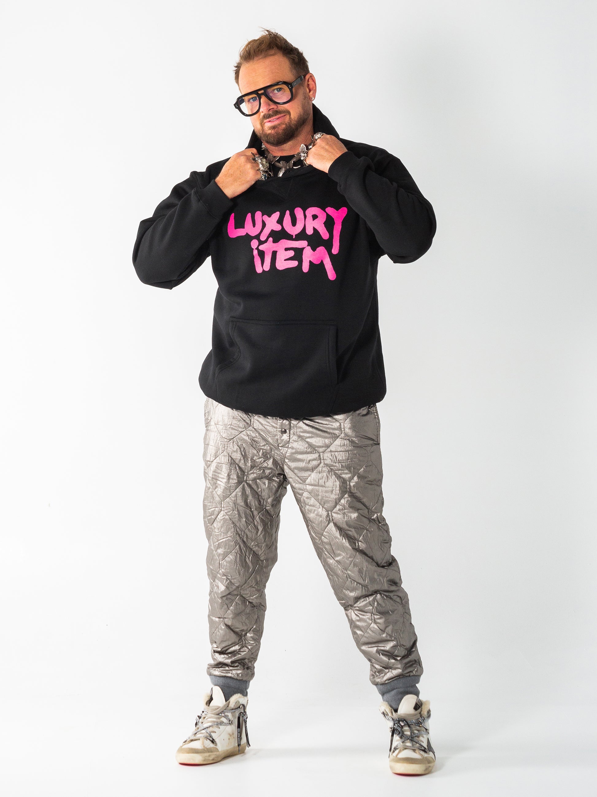 Make a statement without saying a word. The Luxury Item Graphic Hoodie is made for those who lead with confidence and dress with purpose. Featuring bold, hot pink graffiti-style lettering across premium black fabric, this hoodie is a cold-weather head-turner with all the attitude.