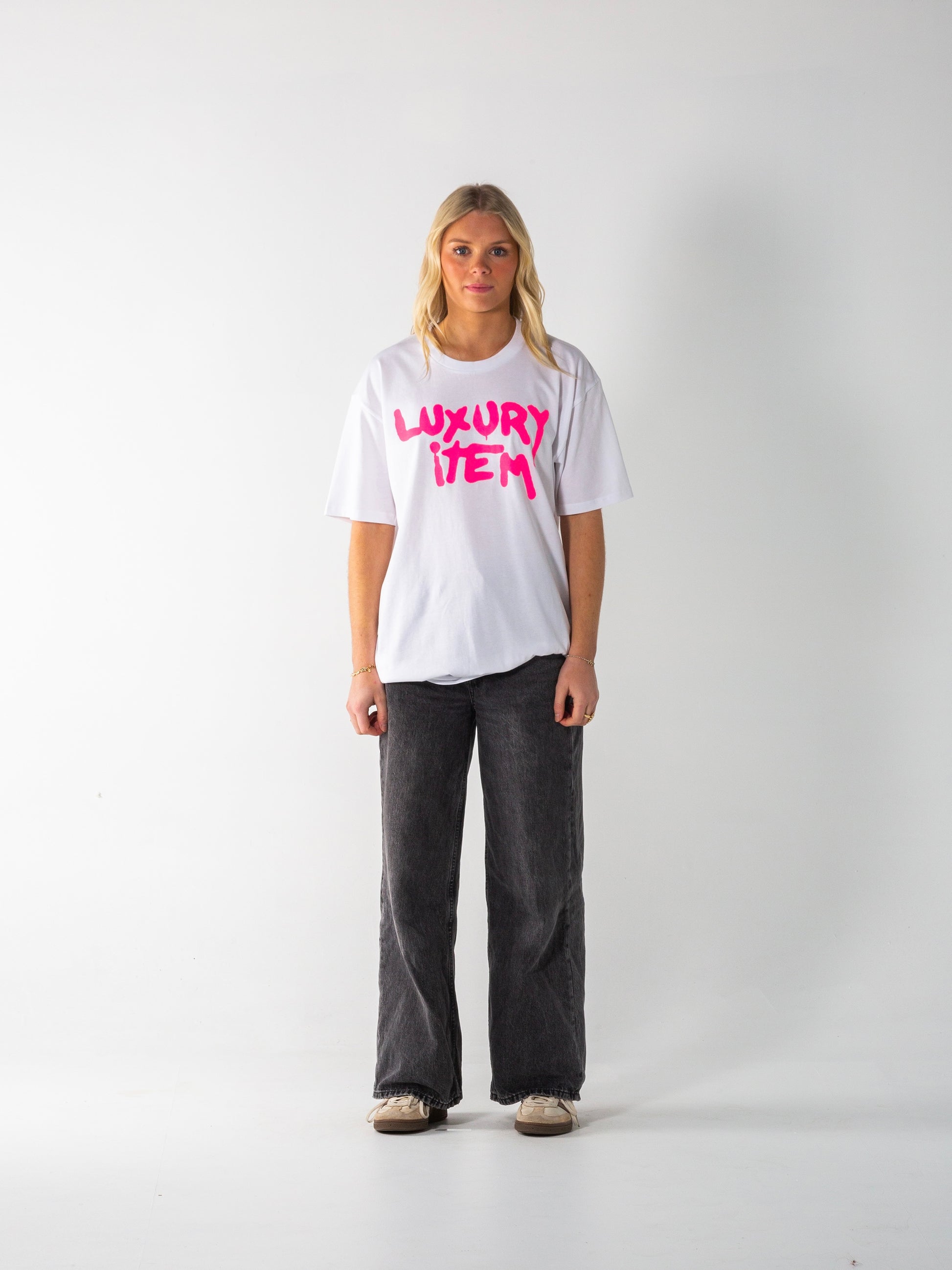 Make a statement without saying a word. The Luxury Item Graphic T-Shirt is for those who live with confidence and dress with purpose. Featuring bold, hot pink graffiti-style lettering on premium cotton, this tee is a head-turner in all the right ways.This design is available in white and black.